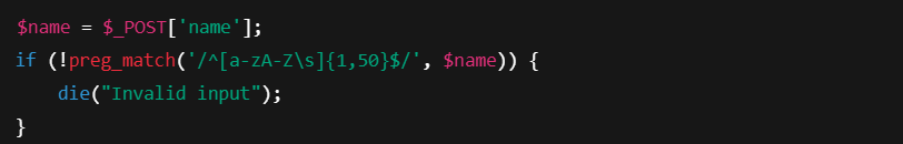 اولین خط دفاع همیشه بررسی ورودی کاربر است.هر دادهای که از کاربر دریافت میشود چه از فرم، چه از URL و چه از Headerها،باید بررسی شود تا فقط شامل مقادیر مورد انتظار باشد.